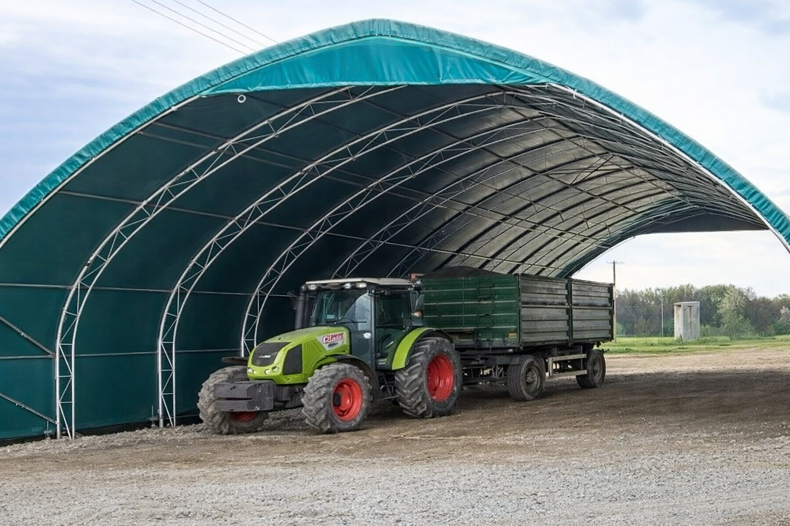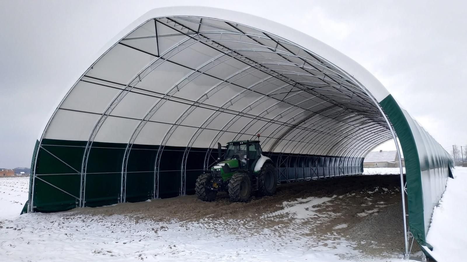 Robust, flexible structures for farming operations, including bale storage, machinery cover, and crop protection.